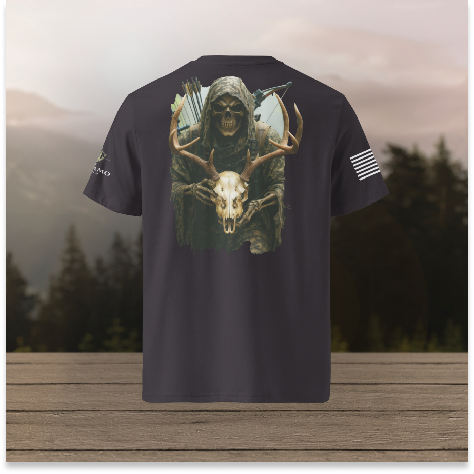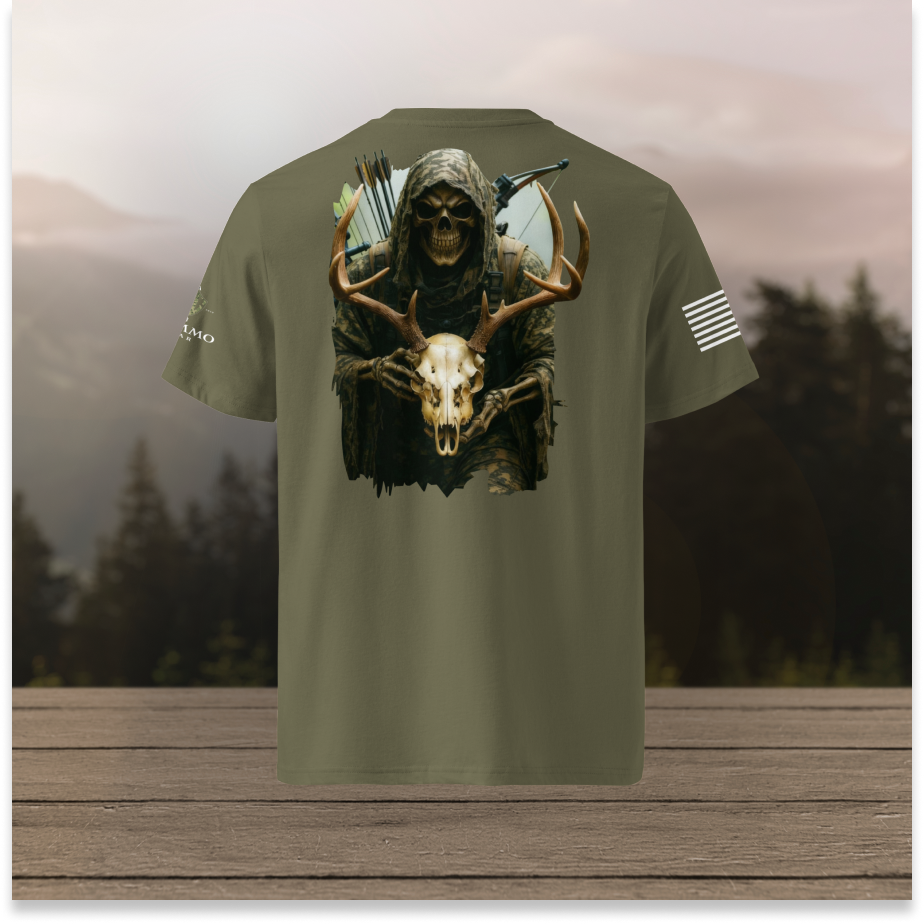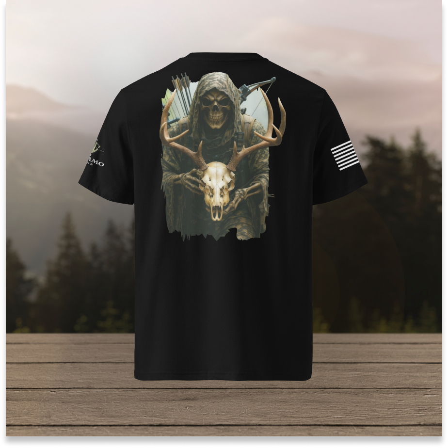 This design is forged for those who understand that hunting is not sport—it’s tradition, survival, and mastery over self. Whether you’re deep in the field, at camp, or wearing your identity daily, this shirt embodies discipline, dominance, and primal focus.