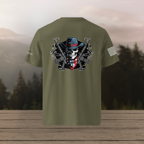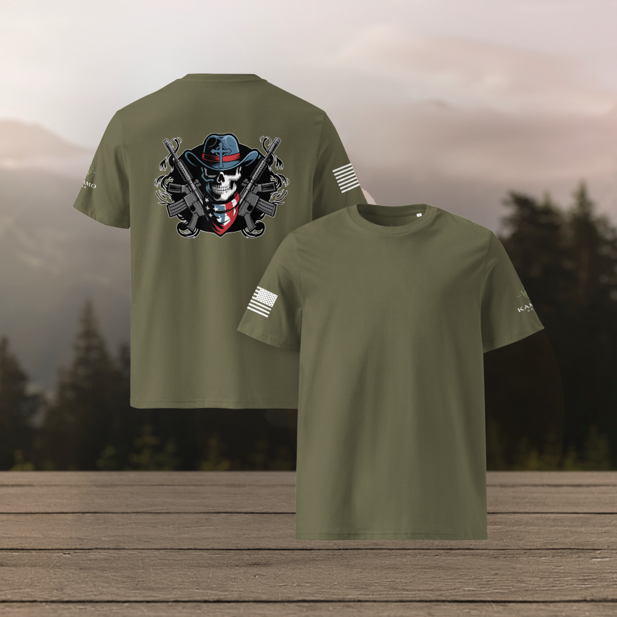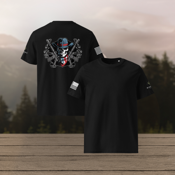 Bold. Fearless. Unapologetic. The Skull and Guns tee is built for those who carry grit in their bones and fire in their spirit. Comfortable, durable, and made to make a statement whether you’re on the move or kicking back.